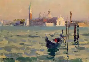 While a student at the Guangzhou Academy, Yim received solid training in the basics of drawing[34] and watercolor painting (along with a smattering of sculpture), but as an oil painter he is effectively self-taught.[8] He cites the great Russian masters of nineteenth century Realism as his primary influences: Korovin, Repin, Surikov, Serov, Kramskoi, Shiskin, Levitan, along with the early twentieth century Russian realist Fechin.[28] The French painter Millet and Spanish painter Sorolla (both nineteenth century Realists), the French impressionist Renoir and post-Impressionist Cézanne, along of course with towering Renaissance artists like Raphael, DaVinci, Velázquez, and Rembrandt and the 20th century American realist Andrew Wyeth, are also credited with helping to inspire Yim's love for painting and his particular approach.[12][13] From the Chinese tradition he draws upon the spirit and "philosophy" of Chinese painting and poetry, which seeks to create a poetic ambience (or yijing, discussed by Wang Guowei in his Poetic Remarks in the Human World[35]) instead of the obsessive attempt to communicate every last detail.