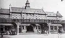 On 1 September 1923, the station was destroyed by a fire in the 1923 Great Kantō earthquake. Six days later, the station reopened with a temporary building. The city of Yokohama and the Ministry of Railways agreed in February 1924 that the station would be relocated.[16]