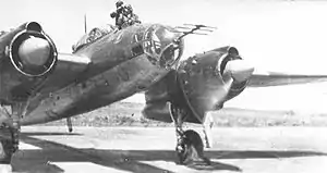 A night fighter version, the P1Y2-S Kyokko (極光, "Aurora"), with Mitsubishi Kasei engines, was equipped with radar and Schräge Musik-style upward-firing as well as forward-firing 20 mm cannon. A total of 96 were produced by Kawanishi,[5] but due to inadequate high-altitude performance against the B-29 Superfortress, many were converted back to Ginga bombers.[6]