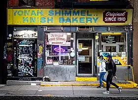 Yonah Schimmel's Knish Bakery is a bakery and restaurant, located at 137 East Houston Street (between First Avenue and Second Avenue), in the Lower East Side, Manhattan, that has been selling knishes on the Lower East Side since 1890. Its current location on Houston Street opened in 1910.[1]
