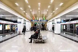 Yongdingmenwai station[1] (simplified Chinese: 永定门外站; traditional Chinese: 永定門外站; pinyin: Yǒngdìngménwài zhàn) is an interchange station on Line 8 and Line 14 of the Beijing Subway.