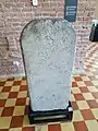 The 1413 stele was erected at Yongning Temple to commemorate its construction by Yishiha. The stele is 179 × 83 × 42 cm in dimensions,[4] and is inscribed on the front with an inscription in Chinese which extols the Yongle Emperor and recounts Yishiha's expedition. On the back of the stele are abbreviated versions of the Chinese inscription written in Mongolian and Jurchen. On one side of the stele, the Buddhist mantra Om mani padme hum is engraved vertically in four different scripts:[4][5]