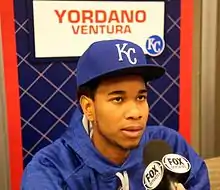 Yordano Ventura Hernández (Spanish: [ɟʝoɾˈðano βenˈtuɾa]; June 3, 1991 – January 22, 2017) was a Dominican professional baseball pitcher for the Kansas City Royals of Major League Baseball (MLB). Ventura made his MLB debut on September 17, 2013. Known as a power pitcher, his fastball topped out at 102 mph in his career.[1] He won the 2015 World Series with the Royals. On January 22, 2017, Ventura was killed in a car crash in the Dominican Republic.