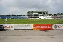 On 4 November 2021, the ECB condemned the response of the YCCC, and suspended them from hosting international matches.[34] This would have financial implications not only for the club, but also for local businesses who would see a loss of trade from those matches.[35] Similarly, several sponsors of the YCCC (Nike, Tetley's, Yorkshire Tea, David Lloyd Clubs, and Harrogate Spring Water), cut their ties with the club.[36] Emerald Publishing withdrew their support too; previously the ground had been called the Emerald Headingley Stadium.[37][38]