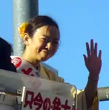 She first ran in the 2009 Tokyo metropolitan assembly elections as a candidate from Toshima City, but failed to win a seat. Her next appearance was in the 2013 House of Councillors election, in which she placed third within the Tokyo at-large district, becoming the first Communist party member to win an at-large district seat in twelve years.[2] One focus of her campaign, along with that of successful JCP candidate Saori Ikeuchi, was the unstable jobs situation faced by young people.[3]