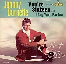 "You're Sixteen" is a song written by the Sherman Brothers (Robert B. Sherman and Richard M. Sherman). It was first performed by American rockabilly singer Johnny Burnette, whose version peaked at number eight on the US Billboard Hot 100 in December 1960 and number 3 in the UK in 1961.[2] The song was covered by Ringo Starr in 1973 and this version reached number one in the US.