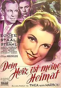 Your Heart Is My Homeland (German: Dein Herz ist meine Heimat) is a 1953 Austrian-West German drama film directed by Richard Häussler and starring Inge Egger, Erwin Strahl and Viktor Staal.[1] It is also known as Magdalena Percht after the lead character.[2] It is part of the trend of post-war heimatfilm. It was shot at the Bavaria Studios in Munich and on location in Salzburg.