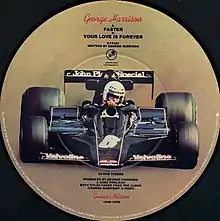 In July 1979, the song was issued on the third single from George Harrison, as the B-side to "Faster".[42] The proceeds from the record went to the cancer research project set up by F1 driver Gunnar Nilsson[43] shortly before his death from cancer in late 1978.[44] A UK-only release, the single was also available as a limited-edition picture disc,[45] marking the first time that a record by a former Beatle was issued in this format.[46][47]