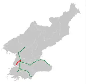 The Youth Hero Motorway (Korean: 청년영웅도로; Hanja: 青年英雄道路), also known as the Pyongyang–Nampo Motorway, is a 46.3-kilometre-long (28+34 mi) expressway in North Korea that connects the cities of Pyongyang, the capital of the country, and Nampo, a city on the coast of Korea Bay in South Pyongan Province. Construction began in November 1998, and the expressway opened in October 2000.[1] It is classified as a level 1 roadway.[2]