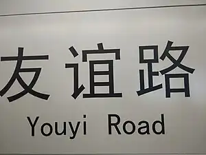Youyi Road station is a subway station in Tianxin District, Changsha, Hunan, China, operated by the Changsha subway operator Changsha Metro.[1] It entered revenue service on June 28, 2016.