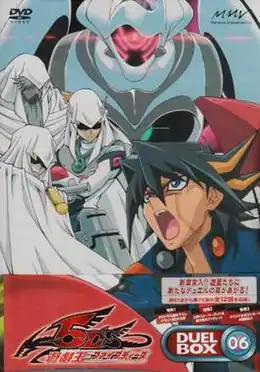 | Jack and Crow arrive at the complex only to find themselves locked out, so they sneak in via a ventilation shaft. As Yusei continues to struggle against the Guard Robot, Primo completes their program's installation into the Ghosts, although one of the other emperors of Yliaster, Jakob (the leader), is curious and suspicious of his actions. With his objective complete, Primo starts a self-destruct countdown and leaves using his power, giving Yusei just 10 minutes to win his duel and escape. Jack and Crow join up with Bruno who, reluctantly, have to escape ahead of Yusei. As time is about to run out, Yusei manages to use his monster's abilities to block off the Guard Robot's Lock Deck and summon Stardust Dragon to win the duel. As the complex explodes, Lazar uses his tricks to save Yusei and warns him not to delve any further into the matter. | |||||