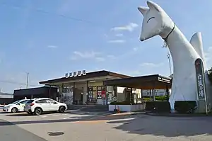 ![]() Yudaonsen Station and "Byakkonoyu Onsen" with a sculpture of white fox | |||||||||||