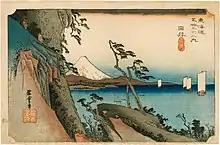 Yui-shuku in the 1830s, as depicted by Hiroshige in the Hōeidō edition of The Fifty-three Stations of the Tōkaidō (1831–1834)