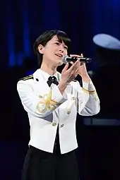 Yukari Miyake (三宅 由佳莉, Miyake Yukari; born December 14, 1986) is a Japanese petty officer of the Japan Maritime Self-Defense Force (JMSDF) and vocalist of the Tokyo SDF Band.[1] The first and only official vocalist for the Music Corp to join the JMSDF,[2] Miyake has released a number of CDs she sang with the SDF Band. [3]