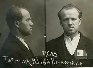 Photo of Tyutyunnyk made after his arrest by the OGPU (complete Russian Cyrillic reads Tyutyunik Yurii Iosifovich)