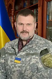 Yuriy Mykolayovych Bereza (Ukrainian: Юрій Миколайович Береза; born 8 February 1970)[1] is a Ukrainian politician and the commander of the Dnipro Battalion.[2][3] Representing People's Front, he was elected to the Verkhovna Rada in the 2014 Ukrainian parliamentary election.[1] In the July 2019 Ukrainian parliamentary election Bereza was not re-elected.[4] As an independent candidate in constituency 24 (in Dnipropetrovsk Oblast) he gained 7.55% of the vote and lost the election to Dmytro Kysylevskyi of the party Servant of the People (who won with 59.36% of the votes)[5][6]