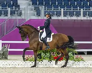 During the winter show season, she competes in the dressage shows held in Wellington, Florida.[4] During the spring and summer she competes regularly in the European circuit.