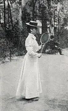 In 1900, she became the French champion with no competitor to challenge for the title, which was quite common at that time. However, she is mainly known for having participated a few weeks later in the international tennis tournament organized by the S.S.I.P. during the Universal Exhibition, a tournament that would be considered an Olympic event. She won the silver medal in women's singles, losing in the final to three-time English champion Charlotte Cooper-Sterry. She was also a finalist in the mixed doubles' tournament, partnered with Harold Mahony of Ireland.[6]