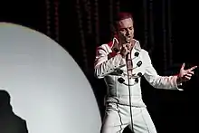 Zachary Oberzan performing in his film/theater/musical hybrid, The Great Pretender, deSingel Theatre Antwerp 2016