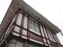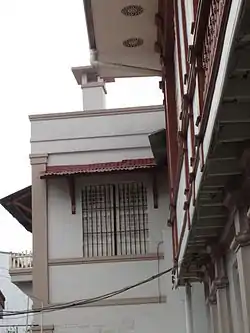 A closer view of the Zamora house. Note the wooden carvings under the eaves of the roofing.
