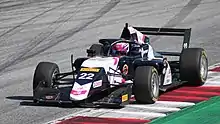 In November 2021 Maloney took part in the FIA Formula 3 post-season test, driving for reigning team champions Trident.[11] In January the following year, the Italian outfit confirmed Maloney would race with them for the 2022 season.[12] The Bajan proved to be competitive right away by taking pole position in rainy conditions at Imola, although a spin at the safety car restart cost him the chance of achieving victory. He scored his first podium in the second race at the Hungaroring, finishing second, whilst a first win followed in the subsequent round at Spa-Francorchamps, where he recovered from a high-speed collision with Oliver Goethe during the sprint race, which had caused the Trident driver's car to roll over.[13][14] Maloney continued with the positive momentum, winning the Zandvoort feature race, having started from pole position.[15] After scoring another pole at the season finale in Monza, Maloney fended off Ollie Bearman in a battle for the victory, which would be awarded to the former following a red flag.[16] Maloney ended up second in the drivers' standings, missing out on the championship by five points to Victor Martins.[17][18]