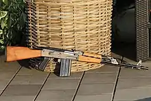 The Zastava M77 B1 is a battle rifle developed and manufactured by Zastava Arms in Serbia (formerly Yugoslavia).[3] It was introduced in 1977.[4] It is a derivative of the Zastava M70[4] and modified copy of the Soviet AKM[1] chambered in 7.62×51mm with an enlarged receiver,[4] and a Western-style flash suppressor. It is gas-operated, air-cooled, magazine-fed, selective fire battle rifle with a fixed wooden stock. The M77 AB1 has a folding stock. Early versions had a milled receiver and an adjustable gas block with flip up rifle grenade sights.