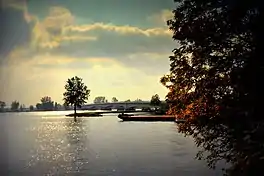 The Zegrze Reservoir (or Zegrze Lake, in Polish officially Jezioro Zegrzyńskie, unofficially Zalew Zegrzyński) is a man-made reservoir in Poland, located just north of Warsaw, on the lower course of the Narew river. It is formed by a dam constructed in 1963 with a hydroelectric complex producing 20 Megawatts of power. Its total area is about 33 km². The name originates from the nearby Zegrze village, featuring the historic Radziwiłł Palace (Pałac Zegrzyński) built in 1847 by the noble Krasiński family.[1][2]