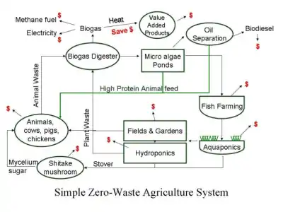 Zero waste agriculture is a type of sustainable agriculture which optimizes use of the five natural kingdoms, i.e. plants, animals, bacteria, fungi and algae, to produce biodiverse-food, energy and nutrients in a synergistic integrated cycle of profit making processes where the waste of each process becomes the feedstock for another process.