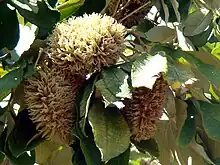 It is cited as a timber tree, and also it is used as an urban tree.[4] The wood is flexible and durable. The tree is also used as an ornamental tree in landscaping. The fast growth and high reproduction rate allows this species to be used for the recovery of degraded areas.[3] This has been shown to improve soil of previously deforested regions, adding nitrogen and potassium in the added organic matter.[5]