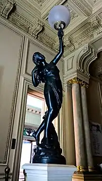 A statue adorns the entrance to the Royal Jewelry Museum.
