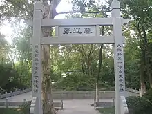 Cao Pi cried when he learnt of Zhang Liao's death. He awarded Zhang Liao the posthumous title "Marquis Gang" (剛侯),[64] which literally means "resolute marquis". In 225, in commemoration of Zhang Liao and Li Dian for their contributions at the Battle of Xiaoyao Ford in 214–215, Cao Pi issued an imperial decree: "During the Battle of Hefei, Zhang Liao and Li Dian defeated an enemy force of 100,000 with only 800 foot soldiers. There had never been anything like this before in the history of warfare. They can be referred to as our state's 'claws and teeth' for their success in breaking the enemy's morale. I hereby increase the number of taxable households in Zhang Liao and Li Dian's marquisates by 100 each, and award a son of each of them the title of a Secondary Marquis."[65]