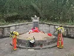 After studying under Hu Hong, son of Hu Anguo, Zhang Shi commenced an official career and became aide-de-camp and secretary to his father. In 1164 his father died, and Zhang Shi buried him according to his wish at the foot of Mount Heng in Hunan, remaining in seclusion near the grave for several years. While there he was visited in 1167 by Zhu Xi, and it is said that they spent three days and three nights arguing about the Doctrine of the Mean. The result was that Zhang returned to official life, and became a strong opponent of the Jurchen Jin and of the policy of conciliation and concession which had been introduced by Qin Gui. He was alternately promoted and demoted until he died while governor of Zhingzhou in Hubei. He was the author of many treatises and commentaries covering portions of the Confucian Canon, in which he gave expression to doctrines which his friend, Zhu Xi, felt himself called upon to refute. Nevertheless, Zhu Xi held Zhang Shi in high esteem and always spoke of him with admiration. Admitted to the honors at China's Confucian temples in 1261, he was granted the posthumous name Wenxuangong.