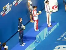 Zhang Yufei (Chinese: 张雨霏; pinyin: Zhāng Yǔfēi; born 19 April 1998) is a Chinese competitive swimmer who specializes in sprint freestyle and butterfly events.[2] Considered one of the most promising swimmers in the international scene, she produced a tally of thirty-seven medals (eighteen gold medals, seven silver medals, and twelve bronze medals) in her swimming career, spanning the Youth Olympics, Asian Games, World Championships and the Summer Olympics. In 2023, she was named as the most valuable player in the women's division, in the 2022 Asian Games in Hangzhou.[3]