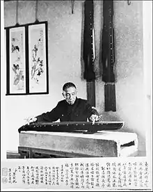 Zhang Ziqian (simplified Chinese: 张子谦; traditional Chinese: 張子謙, 18991991), a famous seven-string zither qin player, was born in Yangzhou, Jiangsu Province, China, during the late Qing Dynasty. He began studying the guqin with a guqin master Sun Shaotao at the age of thirteen. In the 1930s, Zhang moved to Shanghai and worked as an accountant at a salt factory.[1] In Shanghai, he met Zha Fuxi and Peng Zhiqing who were active qin players then. They frequently played the guqin together and Zhang's playing skills were greatly influenced by them. In 1936, Zhang, Zha, Peng and other masters founded Jin Yu Qin She (Qin Society of Contemporary Yu Region), a qin society. In 1956, Zhang became a guqin performer by being appointed as a member of the state-run Shanghai Minzu Yuetuan (Shanghai National Music Ensemble); and a guqin teacher at the Shanghai Conservatory of Music in 1960.[2]