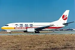 Zhongyuan Airlines (中原航空 Zhōngyuán Hángkōng) was an airline based in Zhengzhou, Henan, China.[1] Its main base was Zhengzhou Xinzheng International Airport.