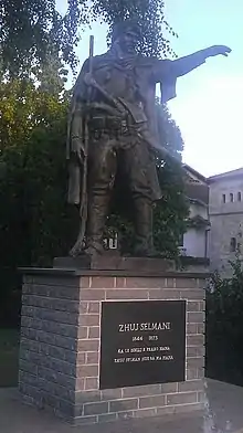 Zhuj Selmani (c. 1844-1875) was an Albanian partisan and an early proponent of the Albanian National Awakening. He was one of the leaders of the Albanian resistance against the Kingdom of Montenegro.[1] At the beginning of the Great Eastern Crisis Albanians responded with armed resistance. Zhuj Selmani fought from his tower house (kulla) known as the tower of Sheremeti (Albanian: Kulla e Sheremetit). Surrounded by Montenegrin forces in his tower, he blew it up, killing himself and many of the enemy soldiers.