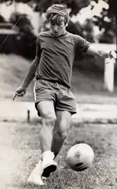 He was also a set-piece specialist, who was renowned for his ability to bend the ball and score from dead ball situations and is considered to be one of the greatest free-kick takers of all time.[3][5][7][14][37] Zico's unique free kick technique, which saw him place significant importance on his standing foot, often saw him lean back and raise his knee at a very high angle when hitting the ball with his instep, thus enabling him to lift it high over the wall, before it dropped back down again; his method of striking the ball allowed him to score free kicks even from close range, within 20 to 16 metres from the goal, or even from just outside the penalty area. Moreover, due to his technique, mentality, unpredictability and accuracy in dead ball situations, he was capable of placing the ball in either top or bottom corner on either side of the goal, which made it difficult for goalkeepers to read his free kicks.[37][47][48] His ability from set-pieces inspired several other specialists, such as Roberto Baggio and Andrea Pirlo.[49][50]