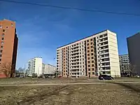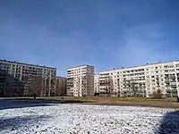 Ziepniekkalns is a neighborhood of Riga, Latvia. It is located in the Pārdaugava section of Riga close to the city's southern border. Ziepniekkalns is the latest out of all Riga's neighborhoods.[1] It was built in the late 1980s and early 1990s and mostly consists of Soviet-built 10 story apartment buildings. However, there are still many older buildings in Ziepniekkalns constructed in the early 1960s. There is a major contrast between older 3 story buildings and newer 10 story ones. In the mid-1990s, route 19 trolleybus was extended to the heart of new Ziepniekkalns and now final stop is at the Mego supermarket. The trolleybus route 4 runs through the city center to Jugla.[2]