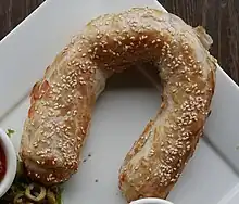 Ziva (Hebrew: זיוה) is an Israeli dish made of puff pastry topped with sesame seeds, and stuffed with cheese and olives. Ziva is served at home and in restaurants. Ziva is cooked in a style similar to the Yemenite Malawach but its ingredients more closely resemble börek, both of which are also common in Israel. Ziva is usually served alongside a hot sauce (skhug), eggs and Israeli salad.