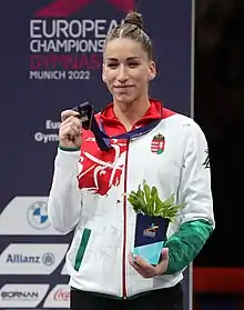 At the European Championships, Kovács helped Hungary finish fourth in the team competition.[29] Additionally, she qualified to the all-around, uneven bars, balance beam and floor exercise finals. During the all-around final, she took the silver medal behind Jessica Gadirova.[30] During apparatus finals, she placed fifth on the uneven bars, eighth on floor exercise, and took the bronze medal on the balance beam.[31][32]