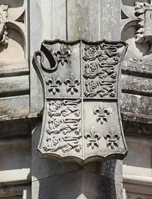 Sculpture of the arms of Henry VII on a jousting shield à bouche.