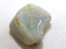 From Latin opalus, from Byzantine Greek ὀπάλλιος (opállios), from Sanskrit उपल (upala, “gem, stone”).
