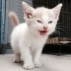 - (only 3rd person) to meow (to produce a cat's typical vocal noise, cry)
