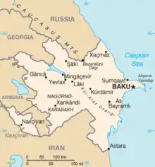 Азербайджа́н • (Azerbajdžán) m (relational adjective азербайджа́нски)