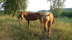 Cognate with Mongolian [script needed] (axta, “castrated”). Note also Mongolian ат (at) above.