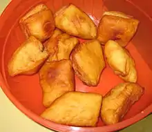 - In Bashkir cuisine, deep-fried pieces of unleavened dough, served with tea