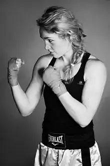 боксе́рка • (boksérka) f pers (genitive боксе́рки, nominative plural боксе́рки, genitive plural боксе́рок, relational adjective боксе́рський)