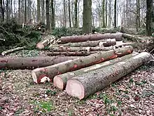 - log, beam (trunk of dead tree, cleared of branches)