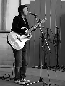 гитари́стка • (gitarístka) f anim (genitive гитари́стки, nominative plural гитари́стки, genitive plural гитари́сток, masculine гитари́ст)
