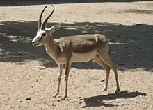 Often used as the main word for "gazelle", since it is the species most familiar to Russian-speakers, although газе́ль (gazélʹ) also exists.